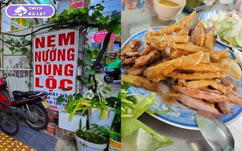 Quán nem nướng Dũng Lộc là điểm đến nhất định không thể bỏ qua khi đến Đà Lạt của những tín đồ đam mê đồ nướng. Từng phần nem nướng của quán có độ mềm mịn, nướng chín tới vừa phải và đặc biệt là không ngấy. Đặc biệt, bên cạnh hương vị món ăn, quán còn chú trọng vấn đề vệ sinh an toàn thực phẩm, giúp không gian trải nghiệm ẩm thực của thực khách luôn thoải mái, an tâm.