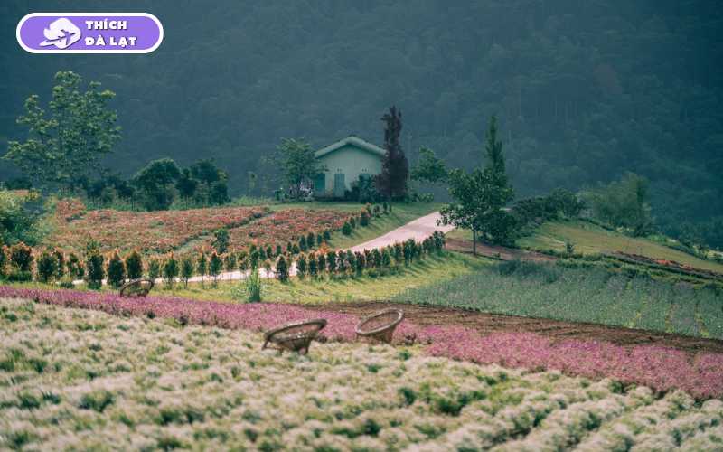 Từ trung tâm Đà Lạt, bạn đi theo đường 723 hướng về xã Tà Nung (khoảng 20–25 km), sau đó rẽ vào tuyến đường bê tông thêm vài km sẽ đến khu vực vườn hoa. Thời gian di chuyển khoảng 30–45 phút tuỳ điểm xuất phát và tình hình giao thông.